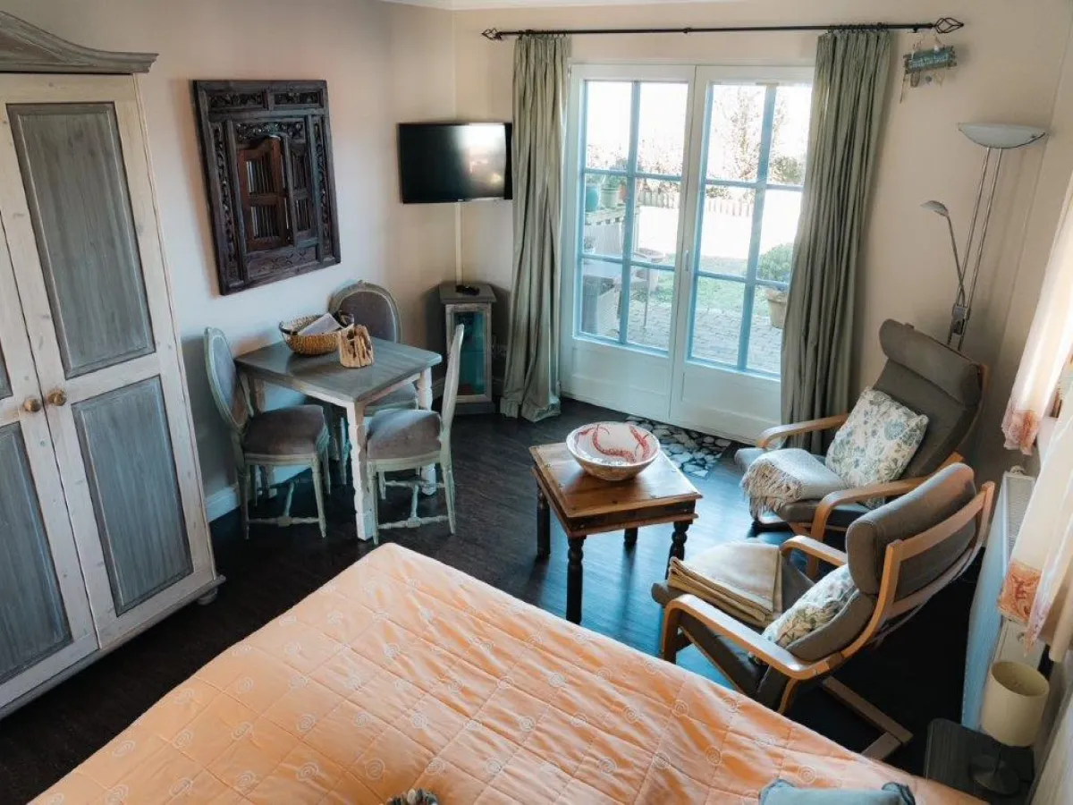 Unser kleines, komplett ausgestattetes Appartement liegt ca.300 Meter vom Hafen entfernt und ist ausgerichtet auf die Lister Dorfwiesen mit eigener Terrasse und Strandkorb.