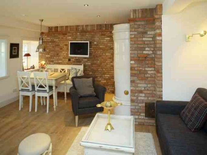 Hochwertige und exklusiv ausgestattete 2- Zimmer Wohnung. Schöner und gemütlicher Wohn- Essbereich mit komplett ausgestatteter Landhausküche und antikem Kachelofen. Im Wohnbereich befindet sich auch das komfortable Schlafsofa und ein Led- Fernseher.