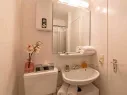 Die Wohnung verfügt über ein kleines Schlafzimmer mit zwei einzelnen Boxspringbetten. Diese lassen sich leider nicht zusammenschieben. Das Duschbad ist innenliegend, aber modern ausgestattet.