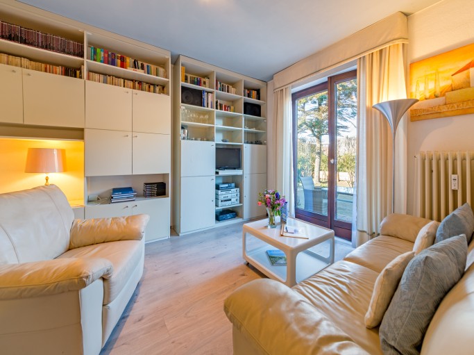 Dieses Zwei-Zimmer-Appartement liegt im Erdgeschoss und verfügt über eine eigene kleine Terrasse. Es verfügt über einen Wohnraum mit Kochnische, ein Duschbad und ein kleines separates Schlafzimmer. Besonders erwähnenswert ist die zentrale und strandnahe Lage und der attraktive Preis.