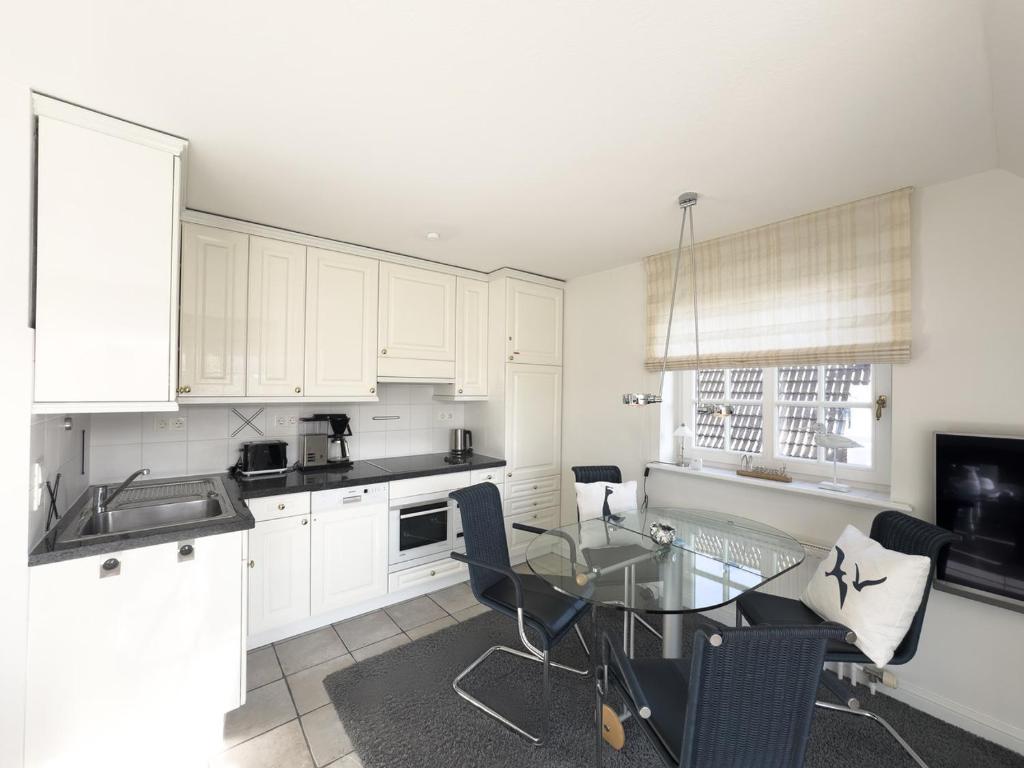Die voll ausgestattete Küchenzeile mit Geschirrspüler, Backofen, Filterkaffeemaschine, Wasserkocher und Kochutensilien, übergehend in den offenen Wohn- Essbereich, ausgestattet mit Couch, Flachbild-TV, Radio und Esstisch ermöglicht Ihnen auch bei „Schietwetter“, Ihren Urlaub in vollen Zügen genießen zu können.