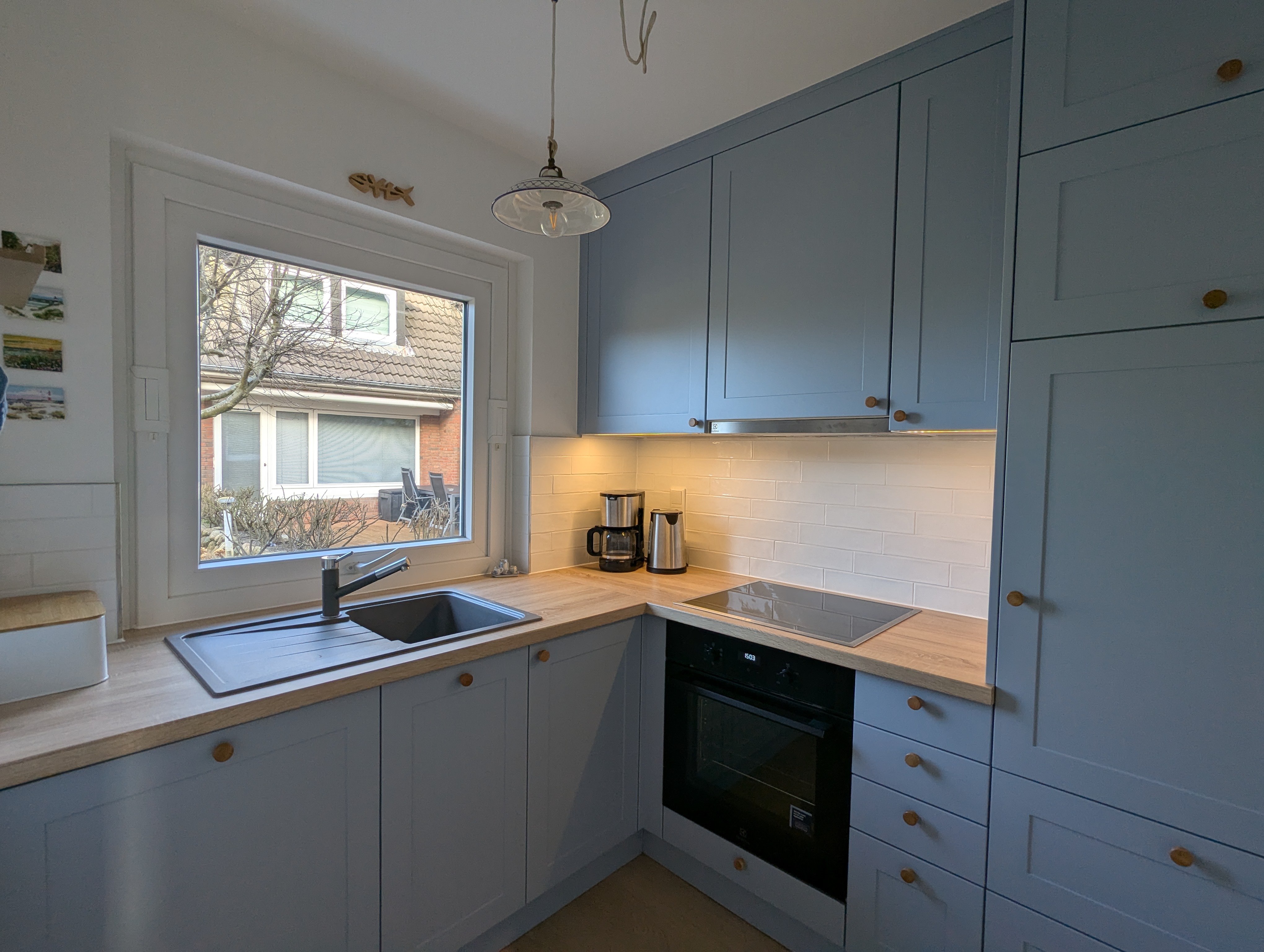 Die separate, neue und voll ausgestattete Küche ist mit einem Kühlschrank mit Gefrierfach, Backofen und einer Spülmaschine ausgestattet. Für den gemütlichen Kaffee finden Sie eine Filtermaschine und eine elektrische Bialetti Mokka Maschine vor, so dass Sie keine Kapseln benötigen.