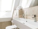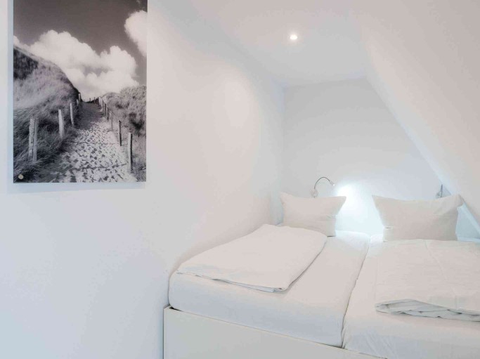 Die Schlafzimmer sind jeweils mit einem Doppelbett ausgestattet. Zudem befindet sich im 1. OG das Badezimmer mit ebenerdiger Dusche, Doppelwaschbecken, einem WC und einer Waschmaschine.